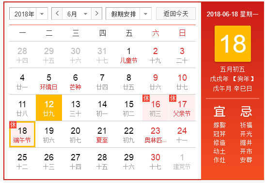 今年的端午節五月初五在禮拜一,父親節在禮拜天,加上周末本來是國家法定節假日雙休,因此2018年的端午節放假,國家安排是6月16日-6月18日休息,美地化工作為一家正規的佛山地坪漆廠家,在節假日安排方面一直是跟隨國家腳步,所以美地美佛山環氧地坪漆公司端午節放假時間和國家法定節假日時間同步。